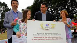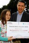 Alberto Sacido, Coordinador de los premios Prensa-Escuela, entrega su diploma a la alumna Iria Pérez Guillamette , que recogio el premio en representación de sus compañeros.